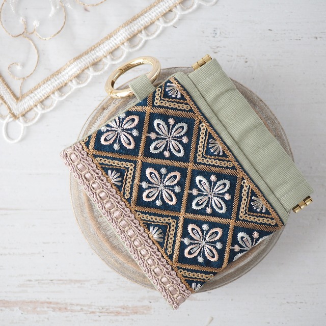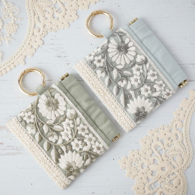 ミニポーチ いつものお出かけが、もっと楽しくなる。 華やかなインド刺繍リボンを主役にした、大人可愛いミニポーチ。 Link.hand-madeの中でも一番人気のアイテムです。 ❁10cmのバネ口ポーチ リップや鍵、イヤホンなどの小物がすっきり収まるサイズ感。 カラビナ付きだから、バッグの持ち手やスマホショルダーにも取り付けられて、使いたいときにサッと取り出せます。 目にするたび気分が上がる、インド刺繍が美しいデザイン。 ちょっとした贈り物や、自分へのご褒美にもぴったりのアイテムです。 ❁━━━━━━━━━━━━━━━━━❁ 生地…オックス生地 カラー…セージグリーン 内布…ナチュラル無地 サイズ…全長約 10.5×10cm バネ口…10cm 重さ…約33〜35g カラビナ付き ❁━━━━━━━━━━━━━━━━━❁ 【ご購入前にご確認ください】 ・綺麗なリボンを選んで製作しておりますが、 インド刺繍リボンの特性上、ほつれやスパンコールの欠けが見られる場合がございます。 ん日本製とは異なる品質となりますことを、あらかじめご了承のうえご検討くださいませ。 ・リボンの柄の出方には個体差があります。 世界にひとつだけの仕上がりをお楽しみください。 ❁━━━━━━━━━━━━━━━━━❁ 【ラッピングについて】 ・プレゼントにもお使いいただけるよう、心を込めてラッピングしてお届けします。 ラッピング例は商品ページの写真をご覧ください。 ・ラッピング資材の仕入れ状況により、予告なくデザインが変更となる場合がございます。 あらかじめご了承ください。 ❁━━━━━━━━━━━━━━━━━❁ 【有料ラッピング(300円)について】 ・オーガンジー巾着を使用した有料ラッピングもご用意しております。 ご希望の方はカートに追加してご購入ください。 ラッピングのイメージは写真をご確認ください。 ・複数ご購入の場合、まとめてラッピングをご希望の方は備考欄にてお知らせください。 ※特にご希望がない場合は、基本的に1点ずつ個別に梱包しております。 ※ラッピングにはオーガンジー巾着を使用しており、サイズの都合によりおまとめできる個数に限りがあります。ご希望に添えない場合はご相談させていただくことがございます。