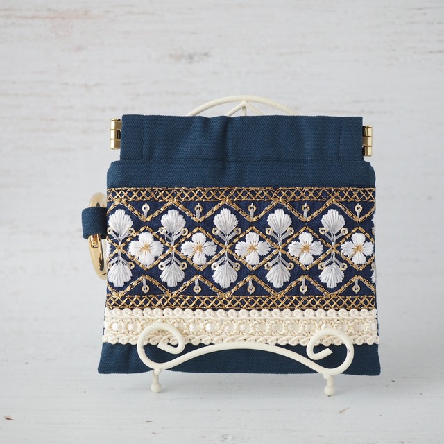 いつものお出かけが、もっと楽しくなる。 華やかなインド刺繍リボンを主役にした、大人可愛いミニポーチ。 Link.hand-madeの中でも一番人気のアイテムです。 ❁10cmのバネ口ポーチ リップや鍵、イヤホンなどの小物がすっきり収まるサイズ感。 カラビナ付きだから、バッグの持ち手やスマホショルダーにも取り付けられて、使いたいときにサッと取り出せます。 目にするたび気分が上がる、インド刺繍が美しいデザイン。 ちょっとした贈り物や、自分へのご褒美にもぴったりのアイテムです。 ❁━━━━━━━━━━━━━━━━━❁ 生地…オックス生地 カラー…ネイビー 内布…ナチュラル無地 サイズ…全長約 10.5×10cm バネ口…10cm 重さ…約33〜35g カラビナ付き ❁━━━━━━━━━━━━━━━━━❁ 【ご購入前にご確認ください】 ・綺麗なリボンを選んで製作しておりますが、 インド刺繍リボンの特性上、ほつれやスパンコールの欠けが見られる場合がございます。 ん日本製とは異なる品質となりますことを、あらかじめご了承のうえご検討くださいませ。 ・リボンの柄の出方には個体差があります。 世界にひとつだけの仕上がりをお楽しみください。 ❁━━━━━━━━━━━━━━━━━❁ 【ラッピングについて】 ・プレゼントにもお使いいただけるよう、心を込めてラッピングしてお届けします。 ラッピング例は商品ページの写真をご覧ください。 ・ラッピング資材の仕入れ状況により、予告なくデザインが変更となる場合がございます。 あらかじめご了承ください。 ❁━━━━━━━━━━━━━━━━━❁ 【有料ラッピング(300円)について】 ・オーガンジー巾着を使用した有料ラッピングもご用意しております。 ご希望の方はカートに追加してご購入ください。 ラッピングのイメージは写真をご確認ください。 ・複数ご購入の場合、まとめてラッピングをご希望の方は備考欄にてお知らせください。 ※特にご希望がない場合は、基本的に1点ずつ個別に梱包しております。 ※ラッピングにはオーガンジー巾着を使用しており、サイズの都合によりおまとめできる個数に限りがあります。ご希望に添えない場合はご相談させていただくことがございます。
