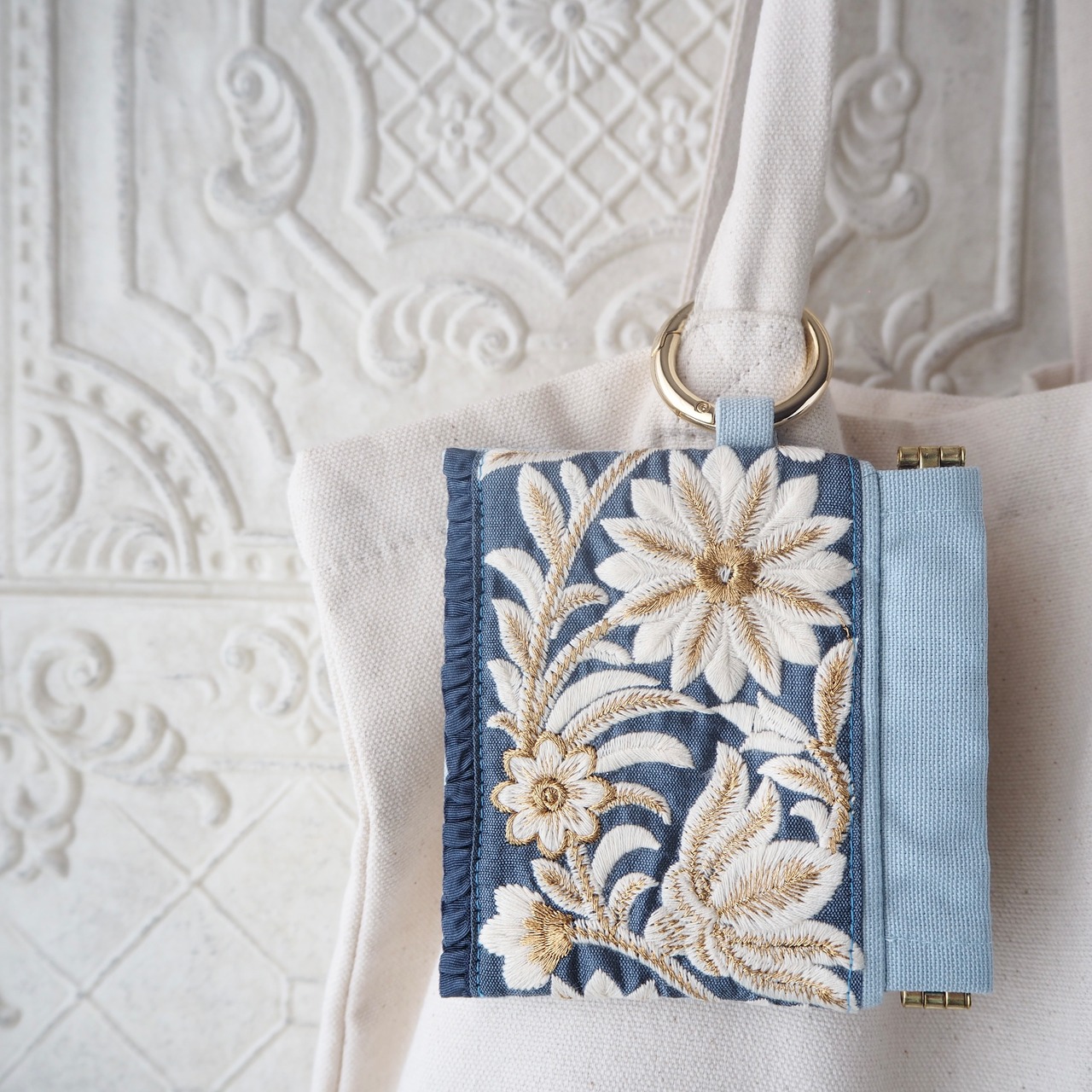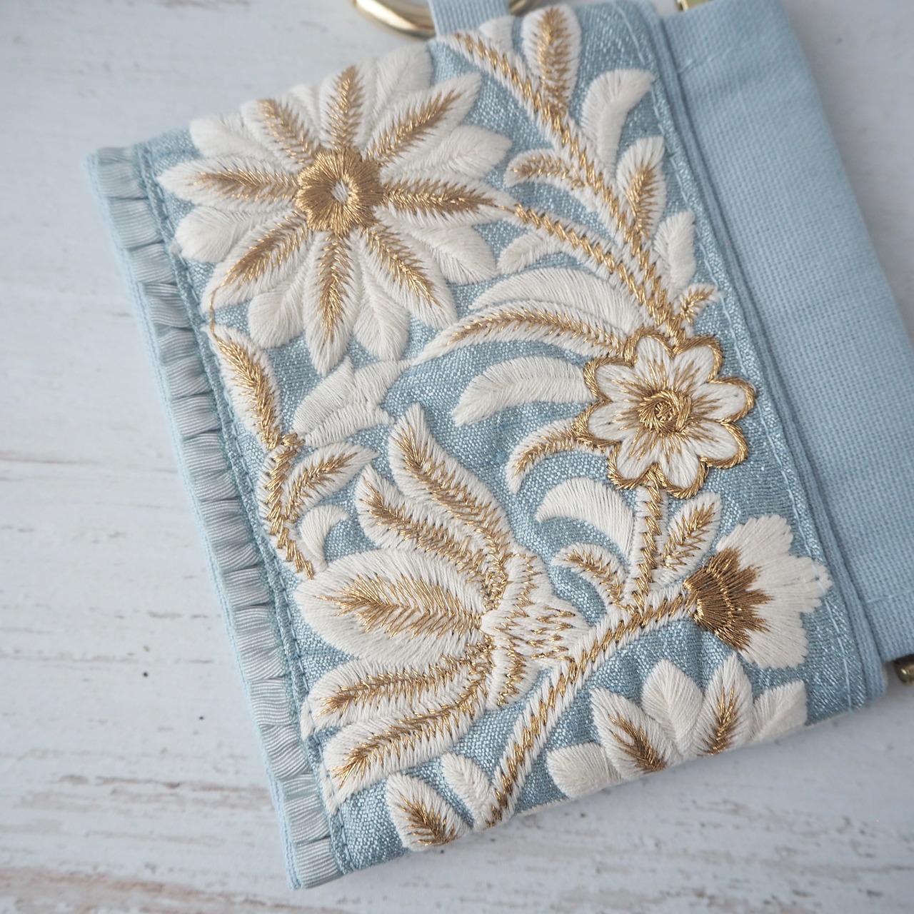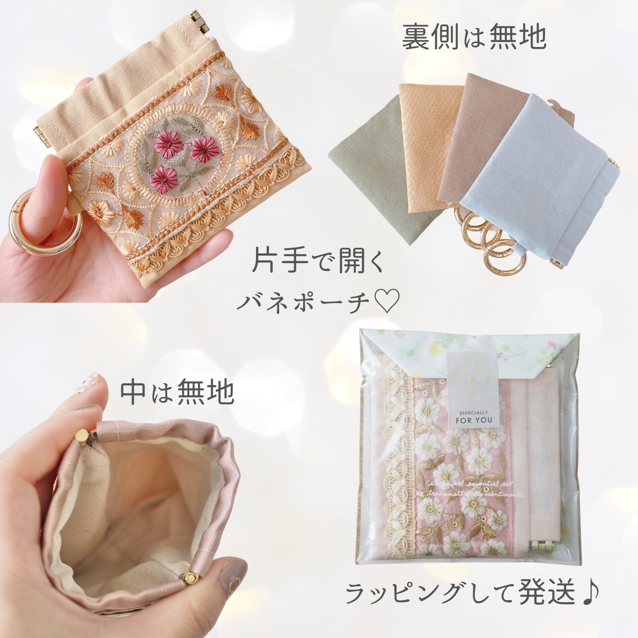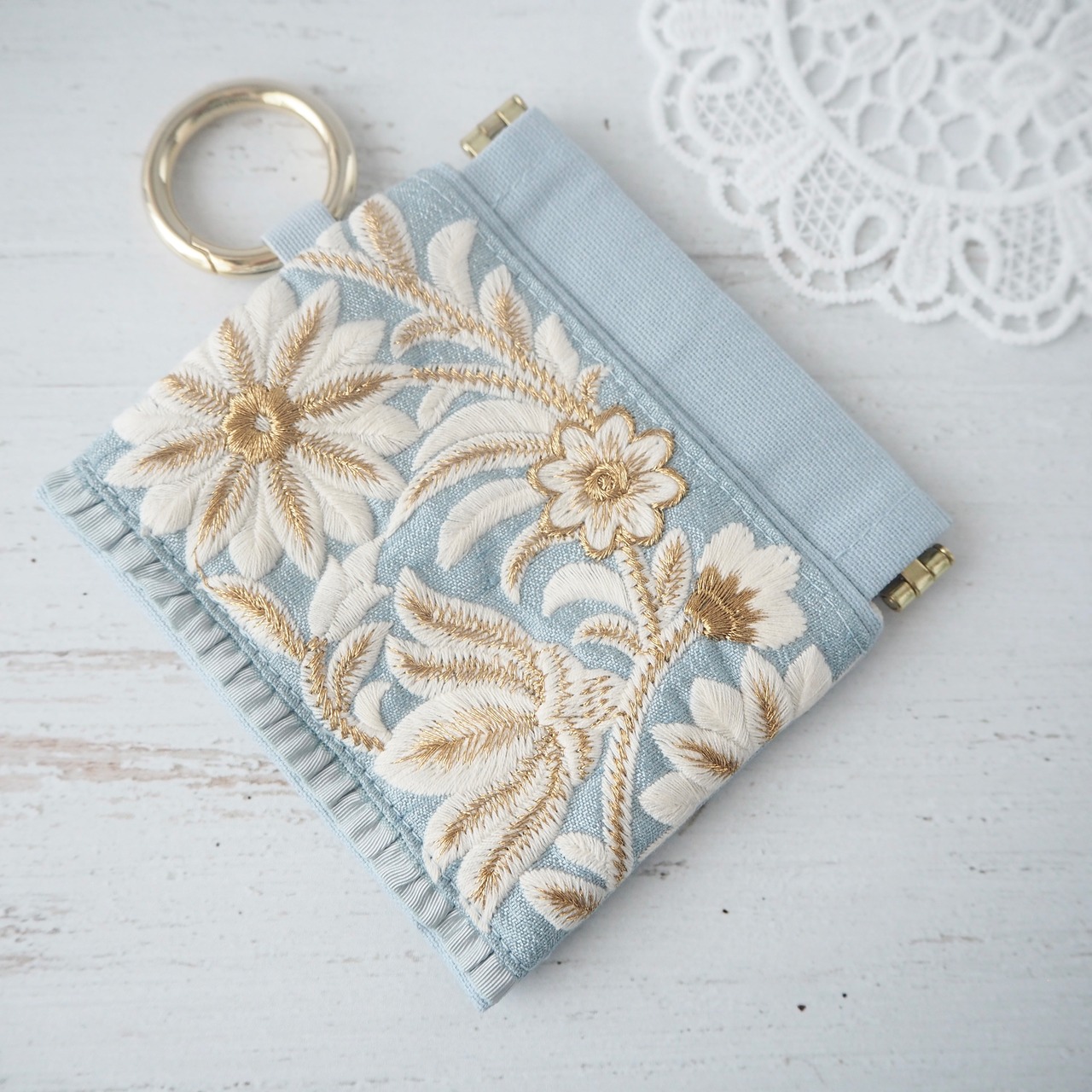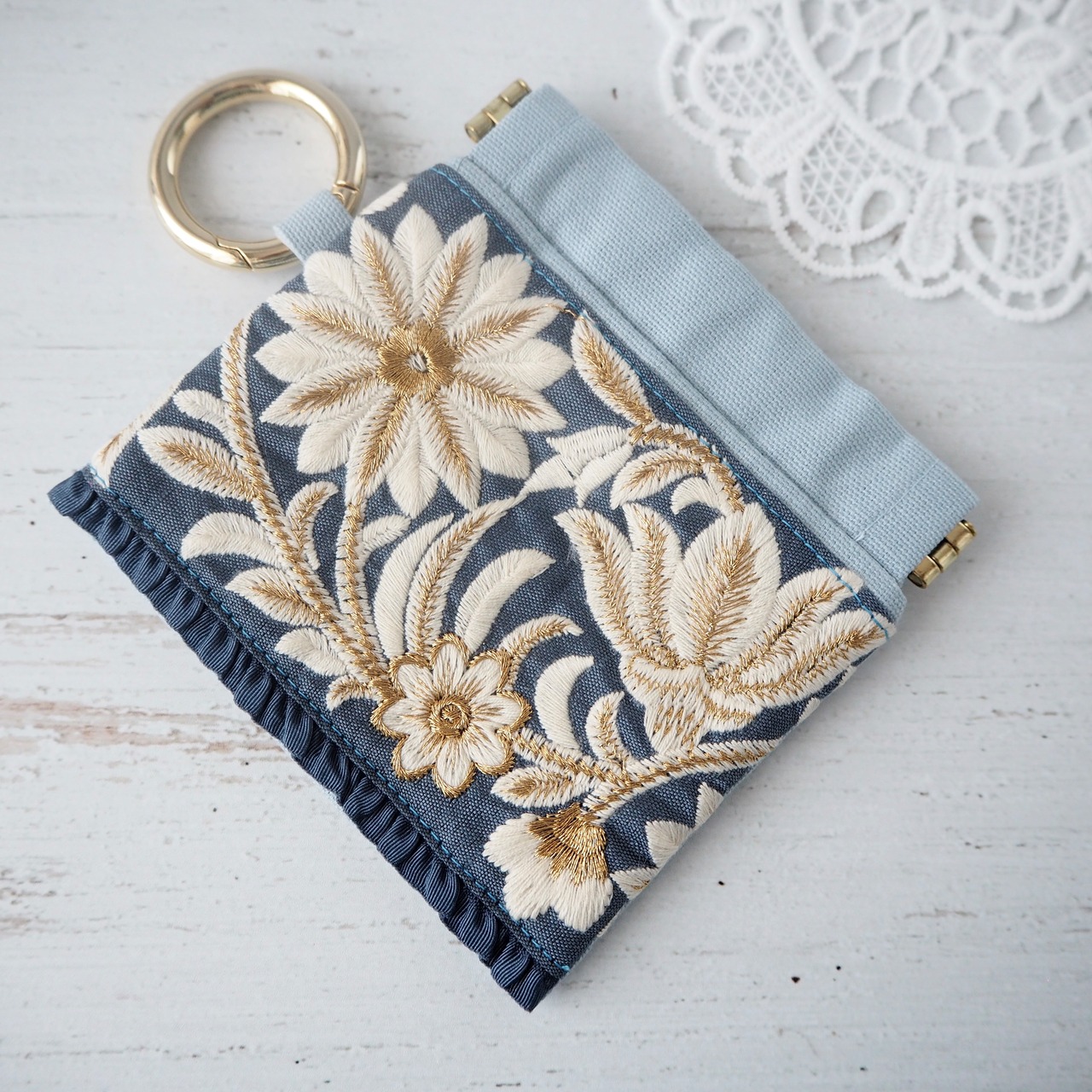 華やかなインド刺繍リボンを主役にした、大人可愛いミニポーチ。