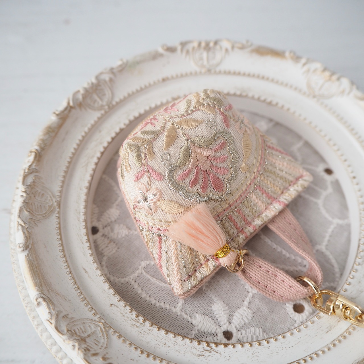華やかなインド刺繍リボンのはぎれを最後まで大切に使いたくて生まれた、Link.hand-madeならではの一点ものです。