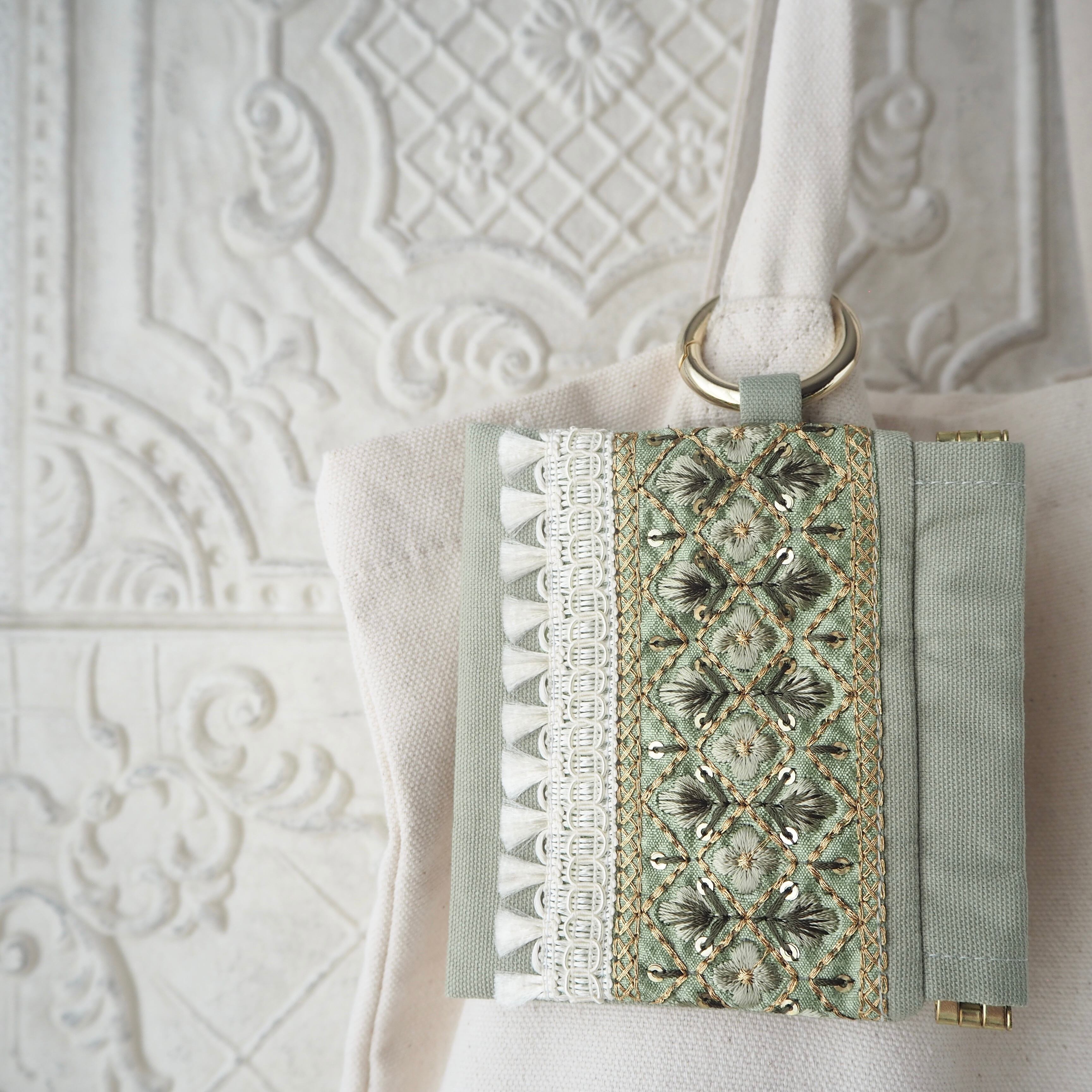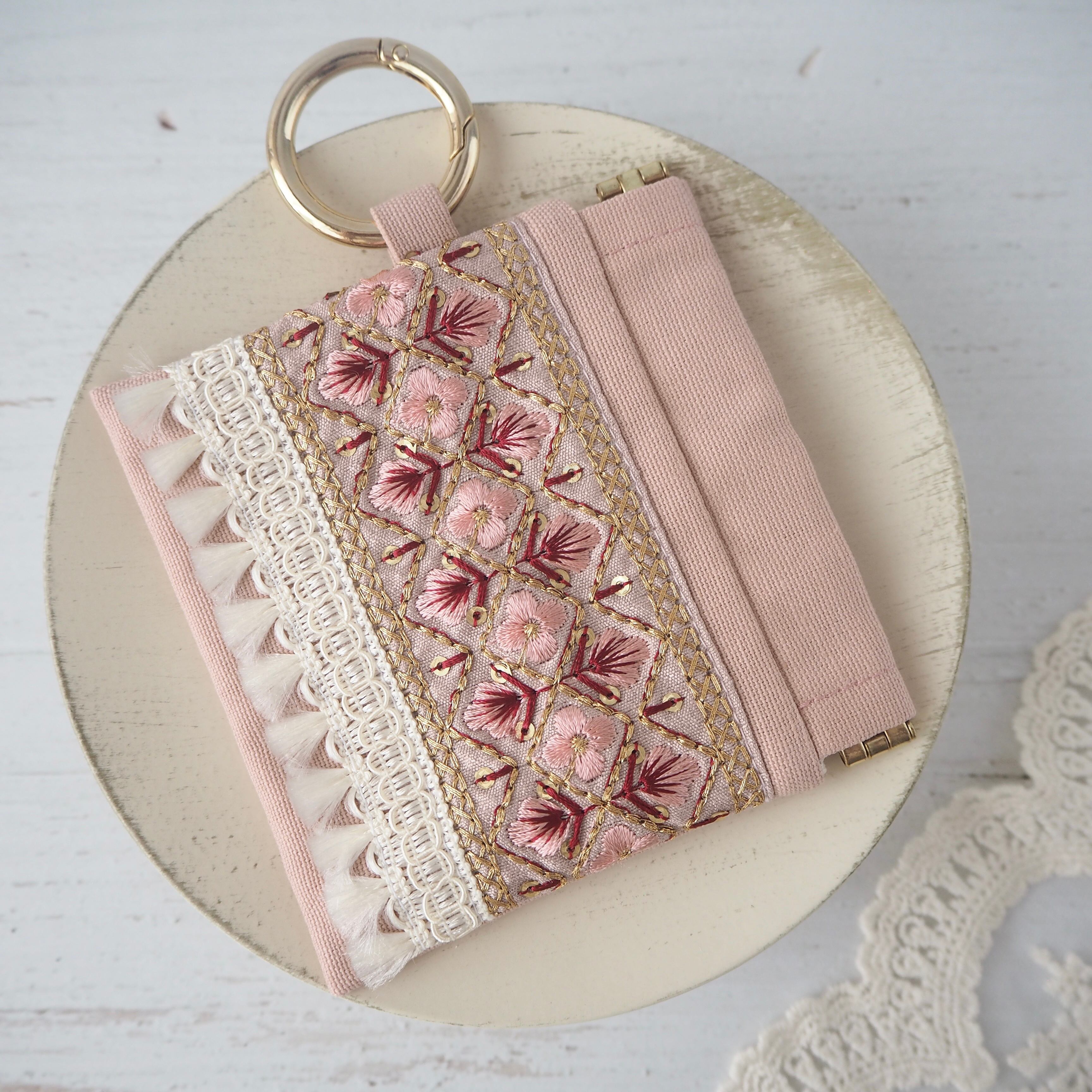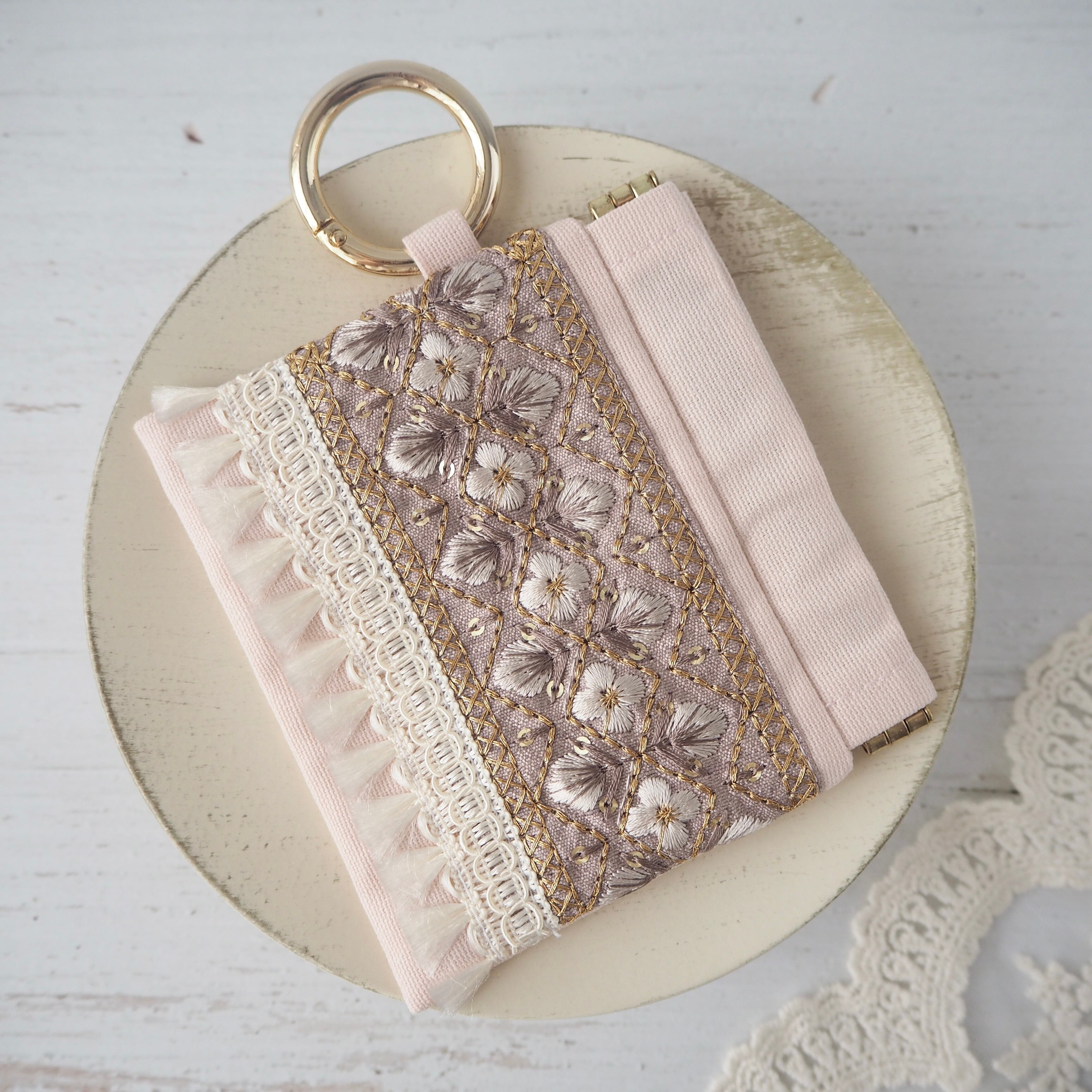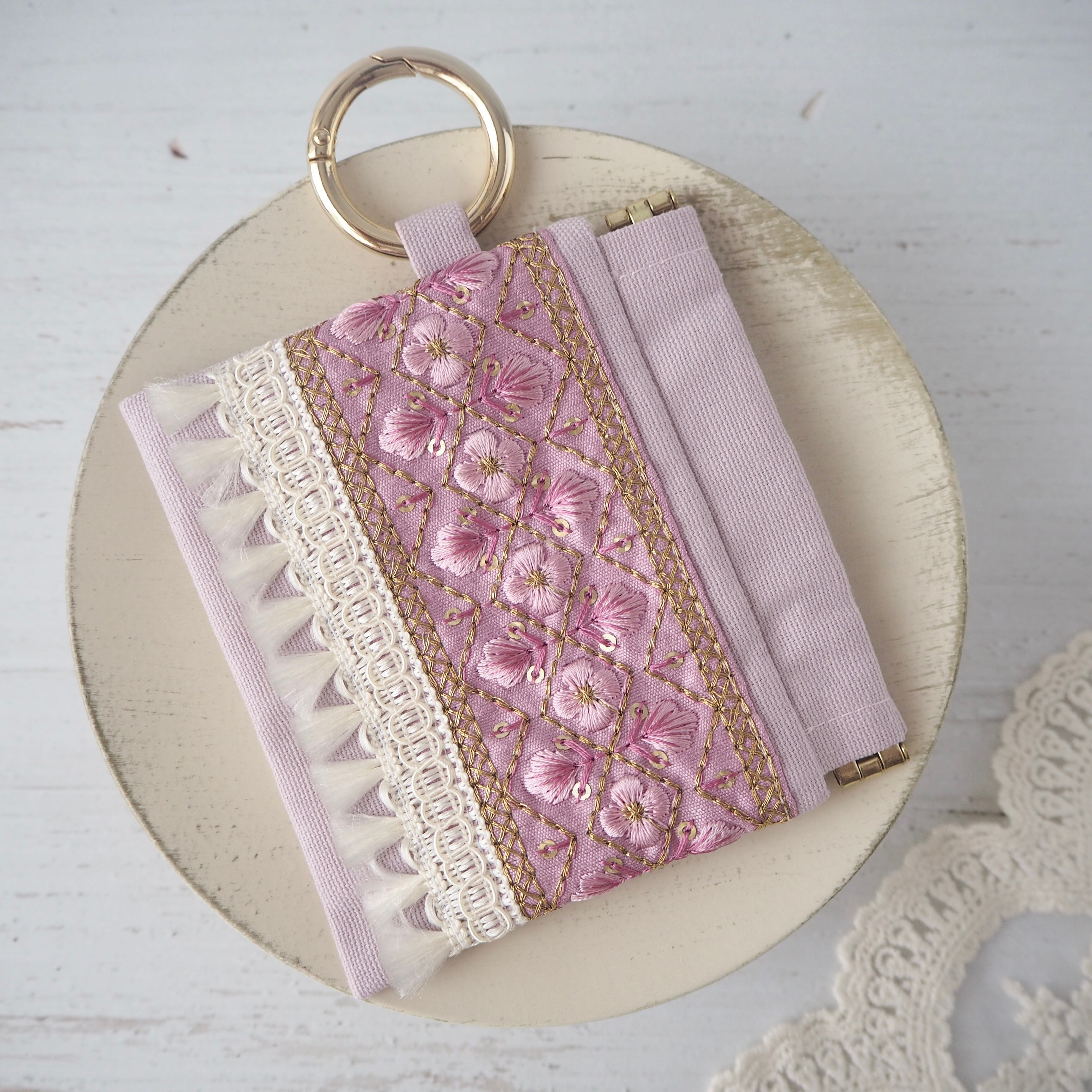 華やかなインド刺繍リボンを主役にした、大人可愛いミニポーチ。