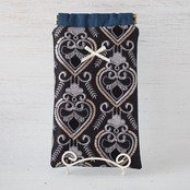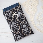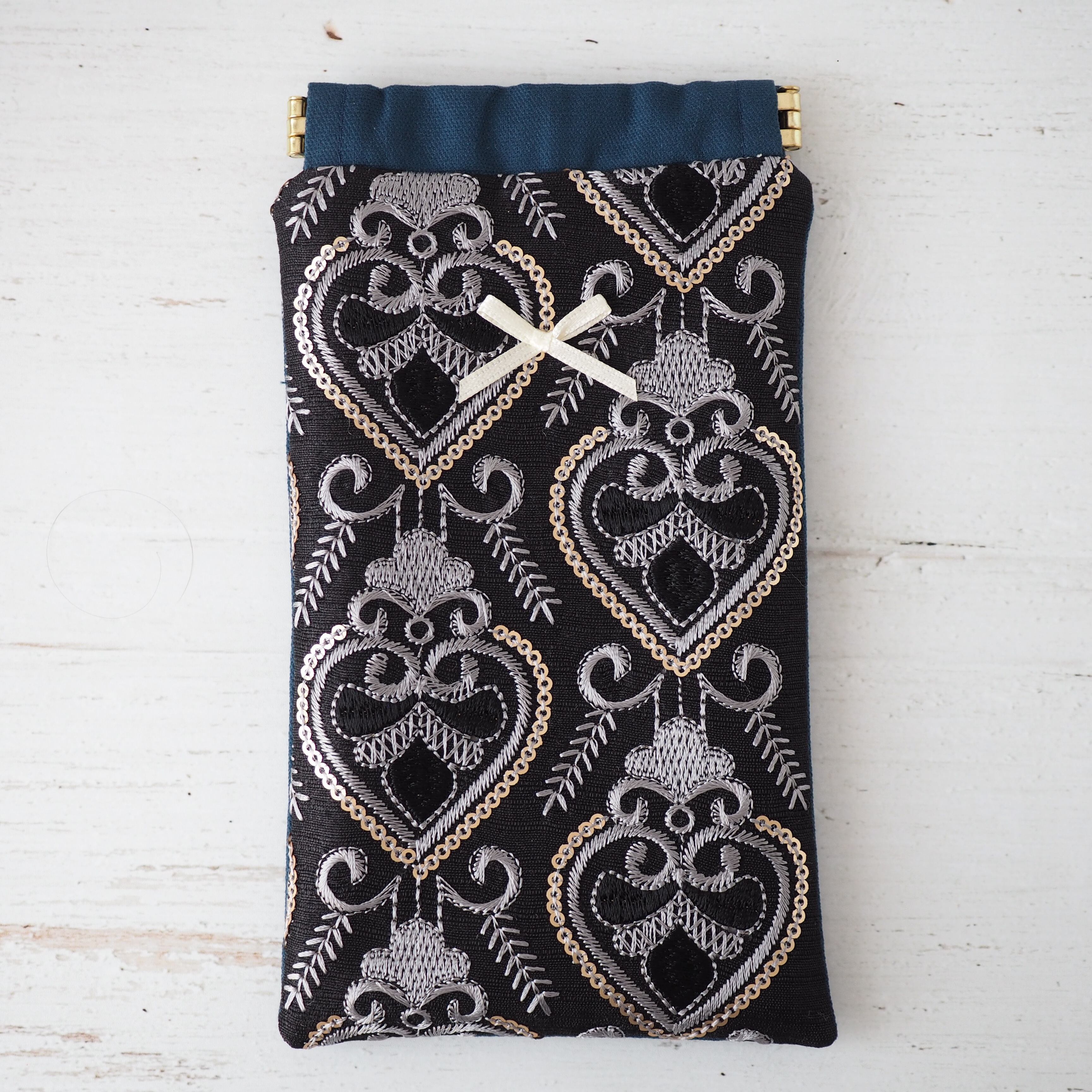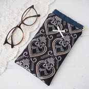 インド刺繍リボンとやわらかなカラーの生地を組み合わせた、ふんわり軽やかなメガネケースです。