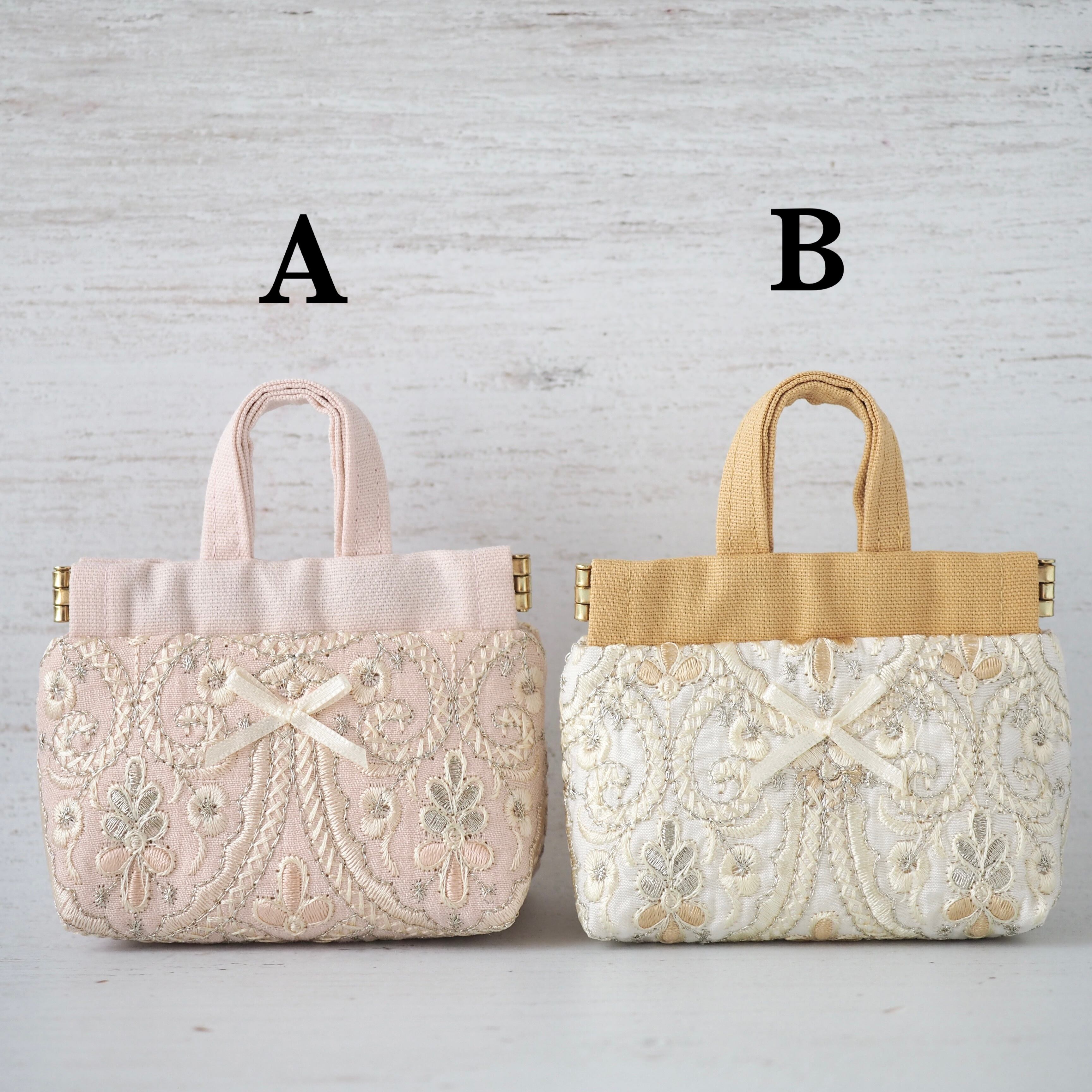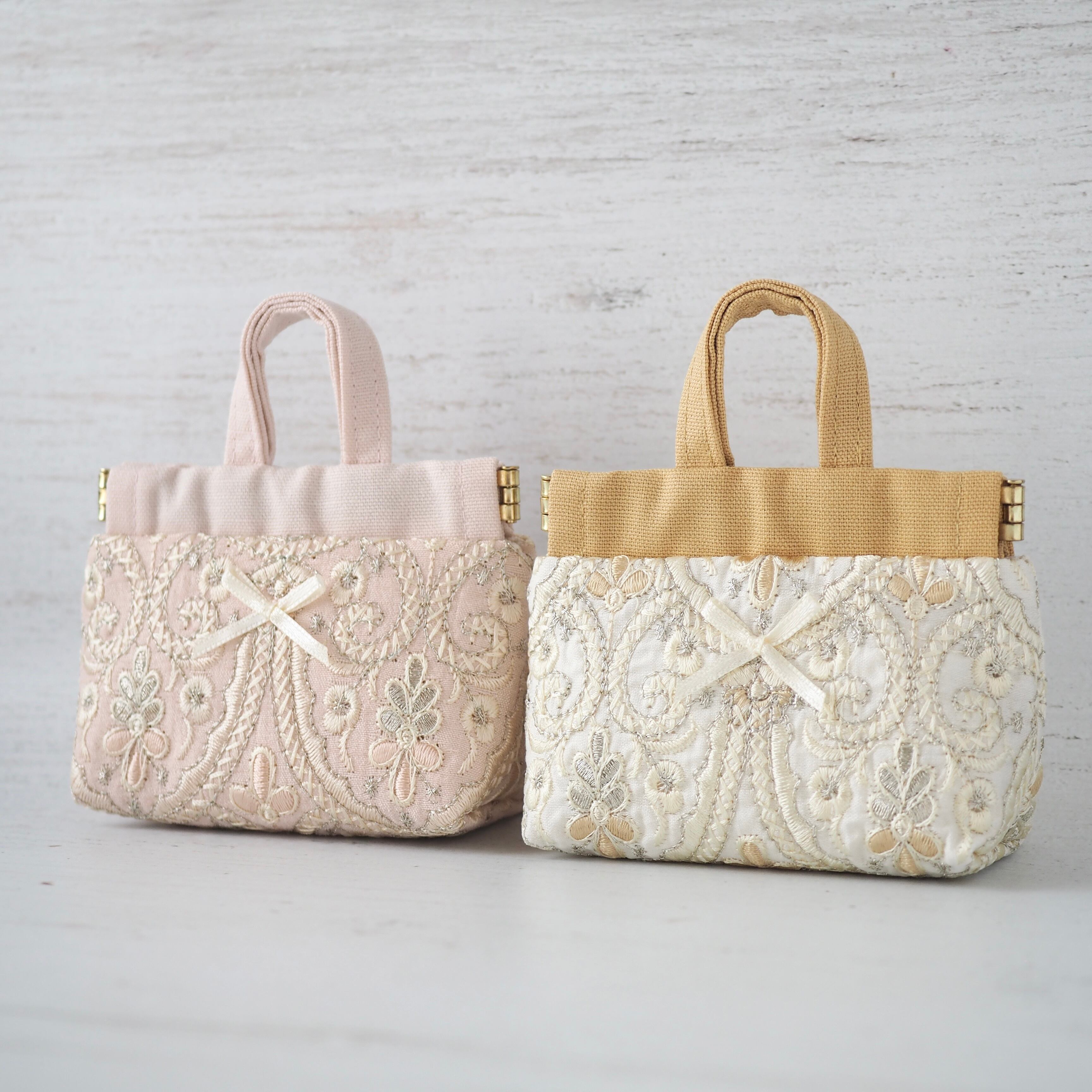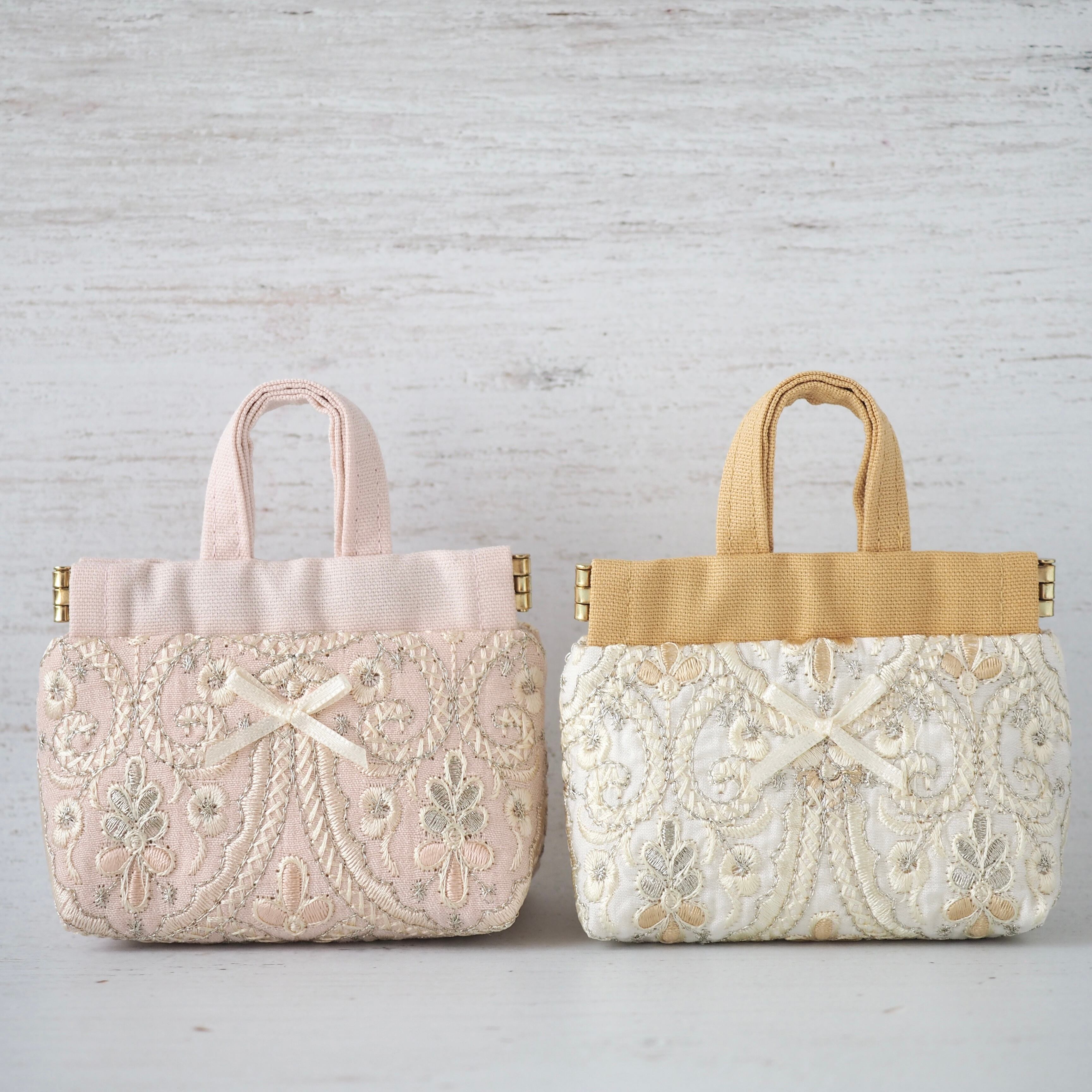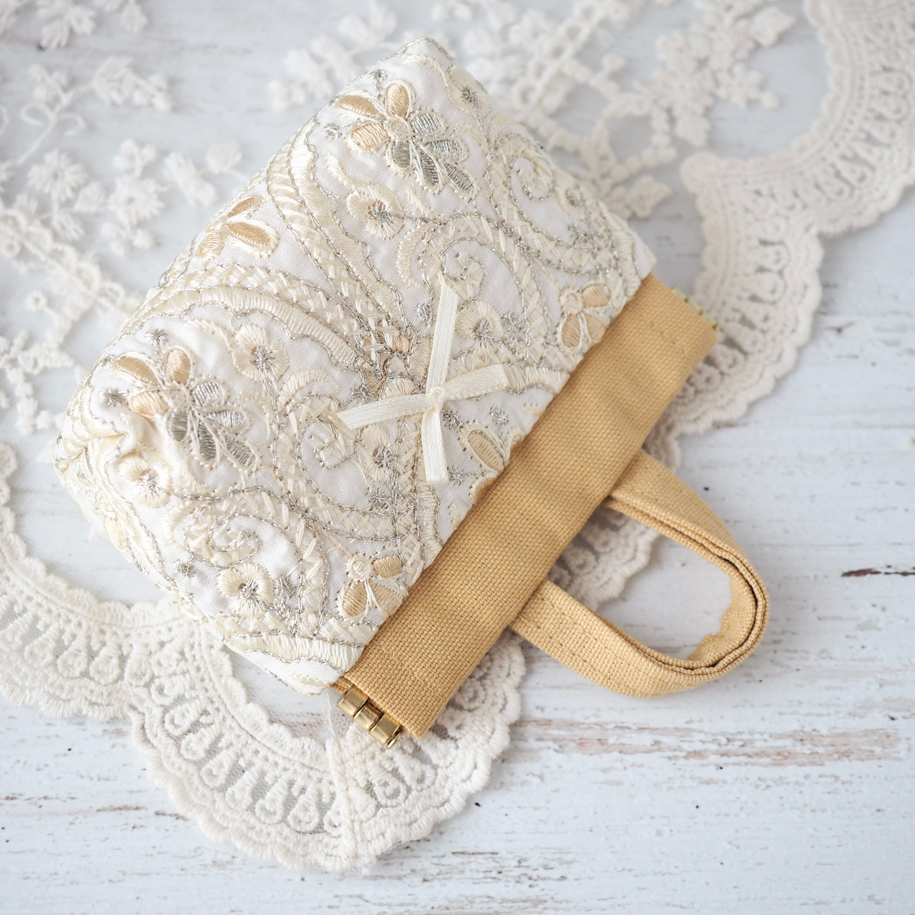 ふっくらとしたシルエットに、華やかなインド刺繍生地を合わせて上品な印象に仕上げました。