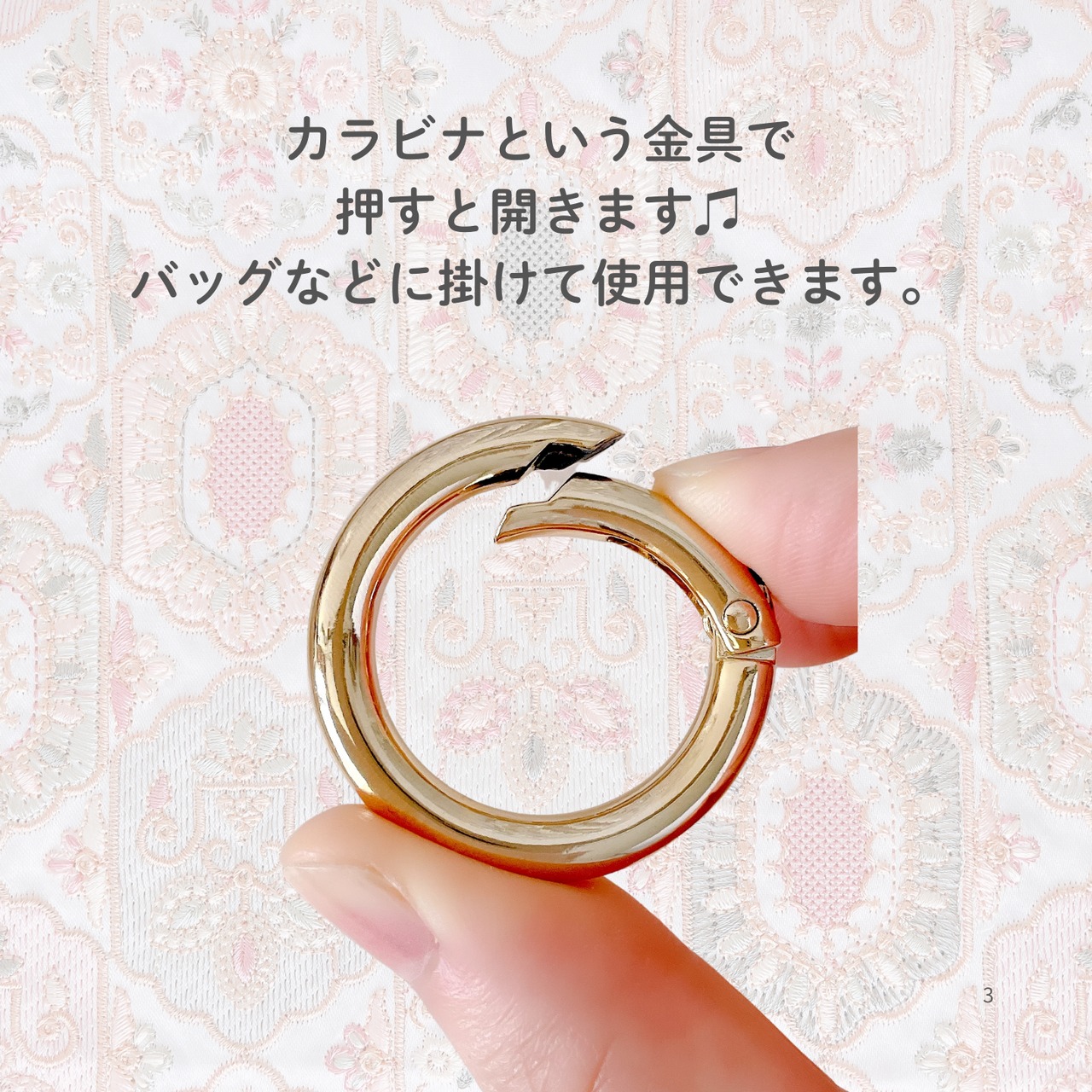バッグやスマホショルダーに取り付けられるカラビナ付きで、毎日のお出かけに寄り添います。