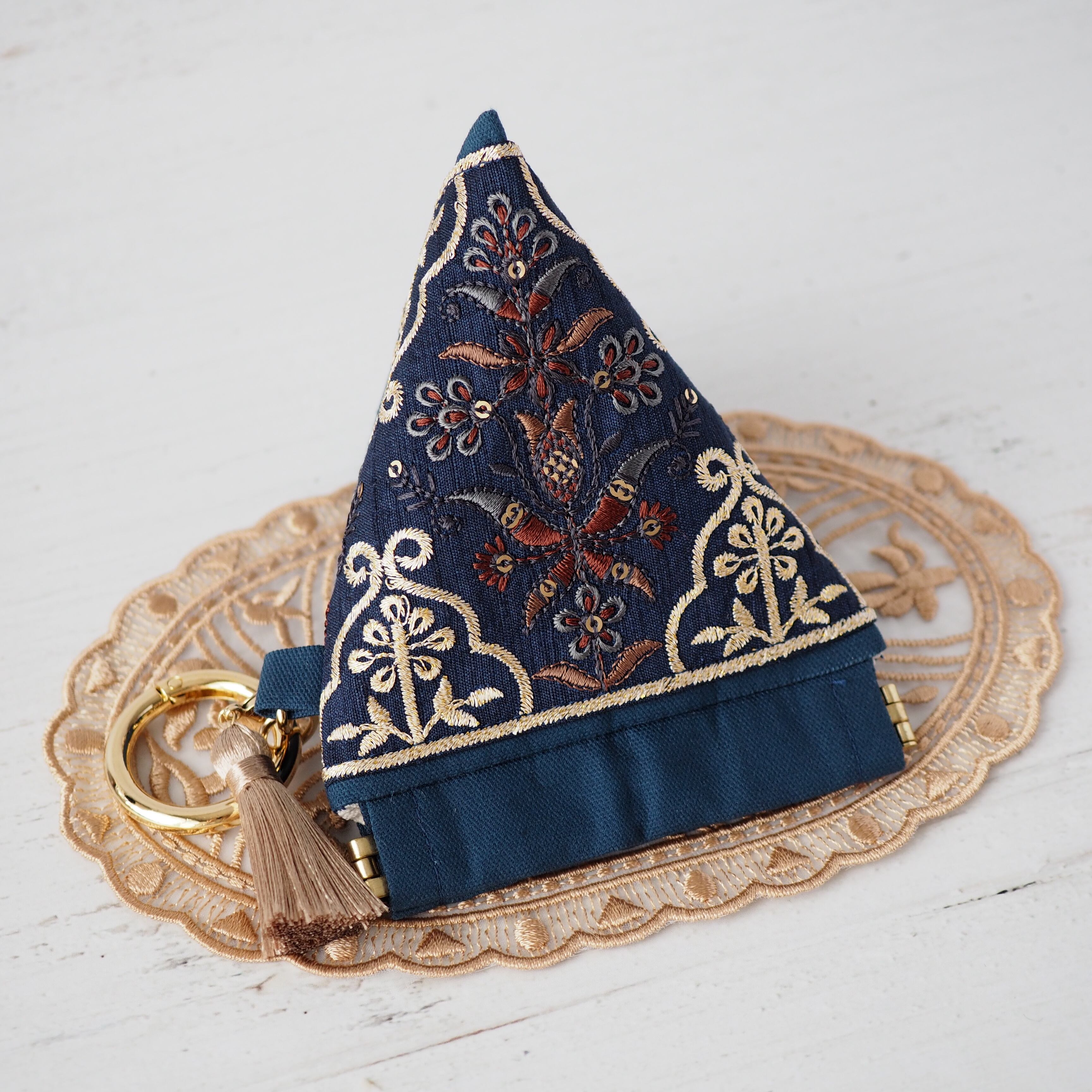 華やかなインド刺繍リボンを主役に、手に取るたび気分が上がる一品に仕立てました。