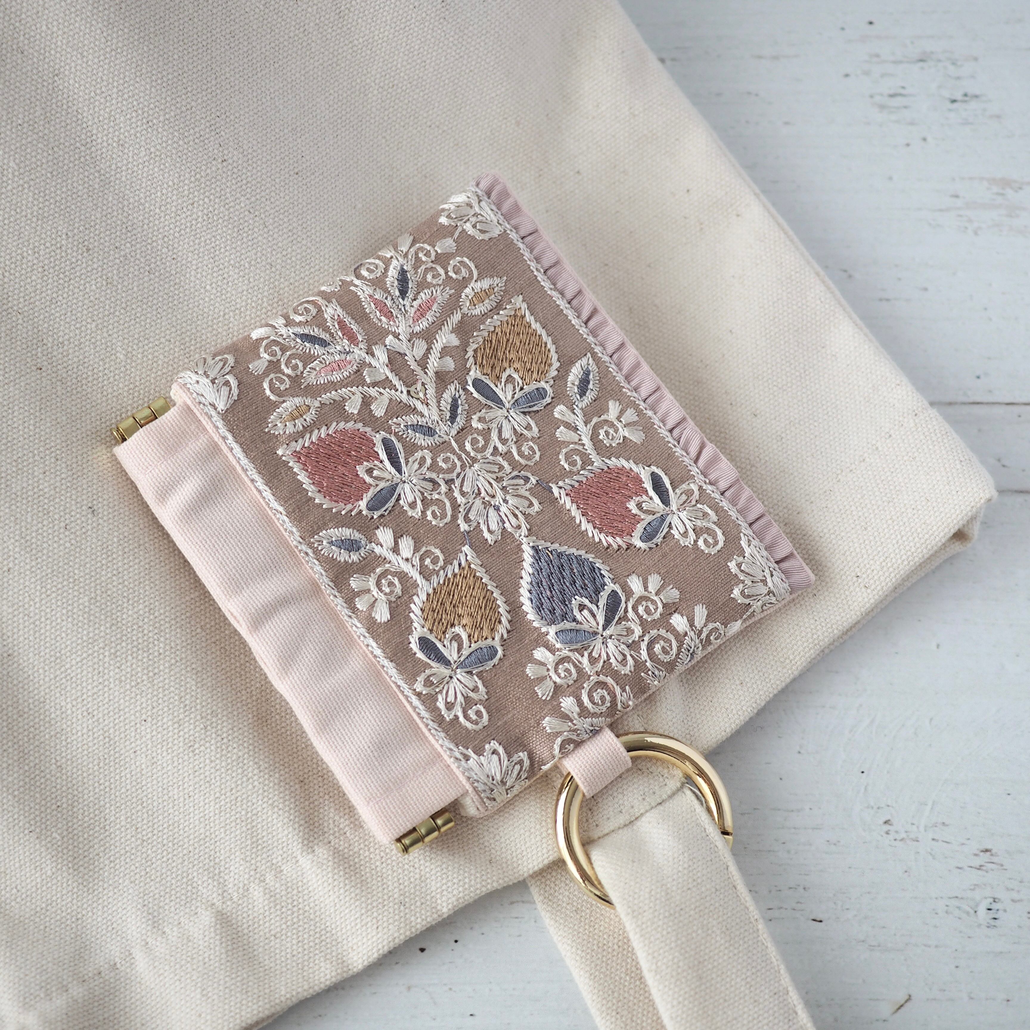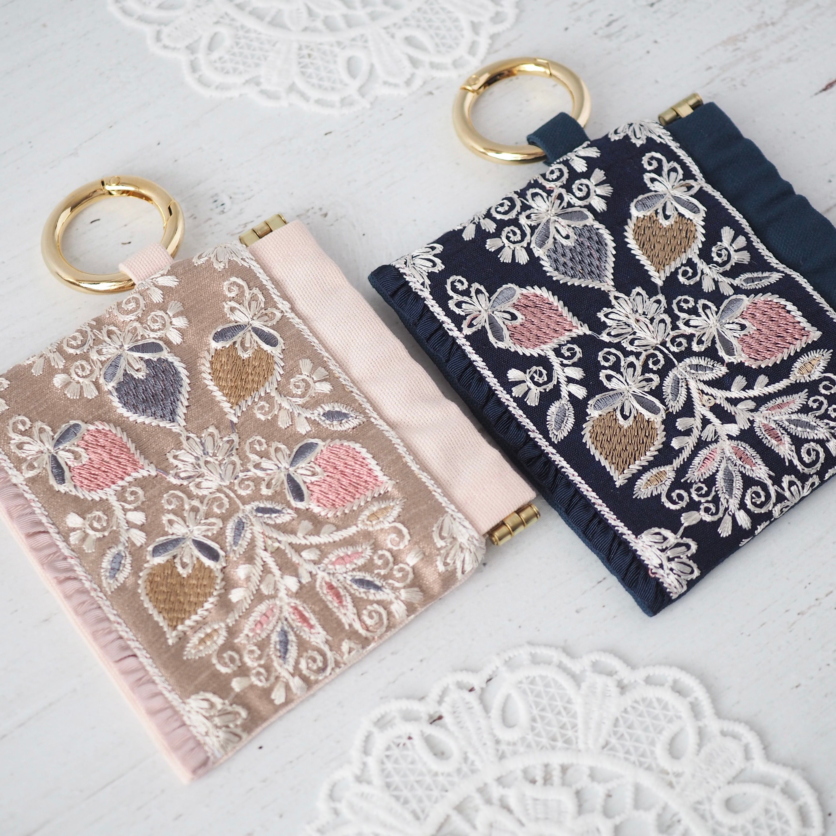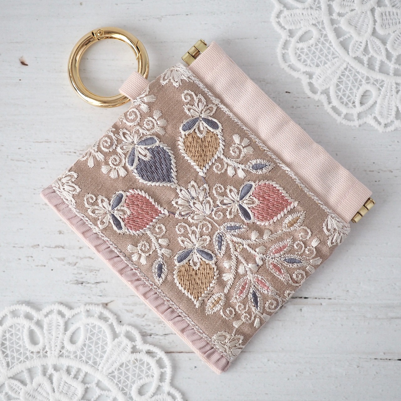 華やかなインド刺繍リボンを主役にした、大人可愛いミニポーチ。