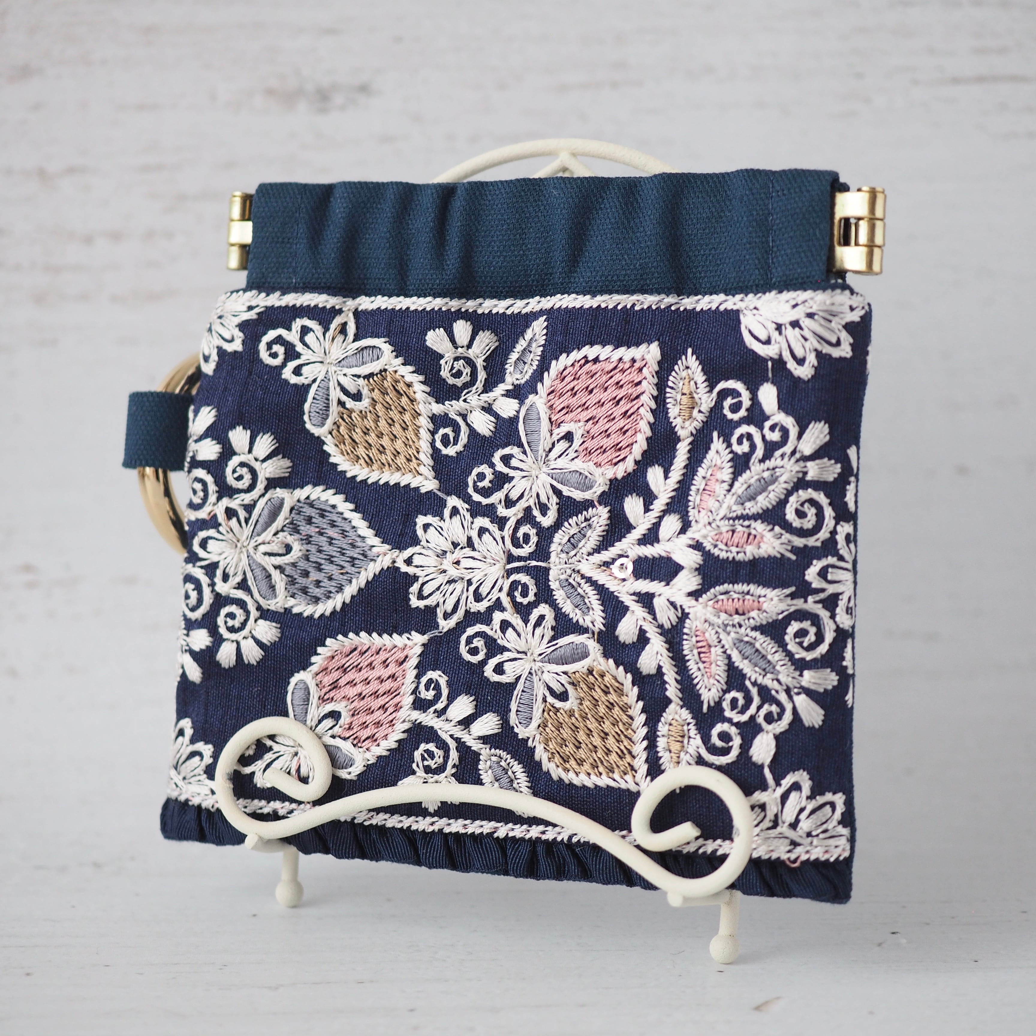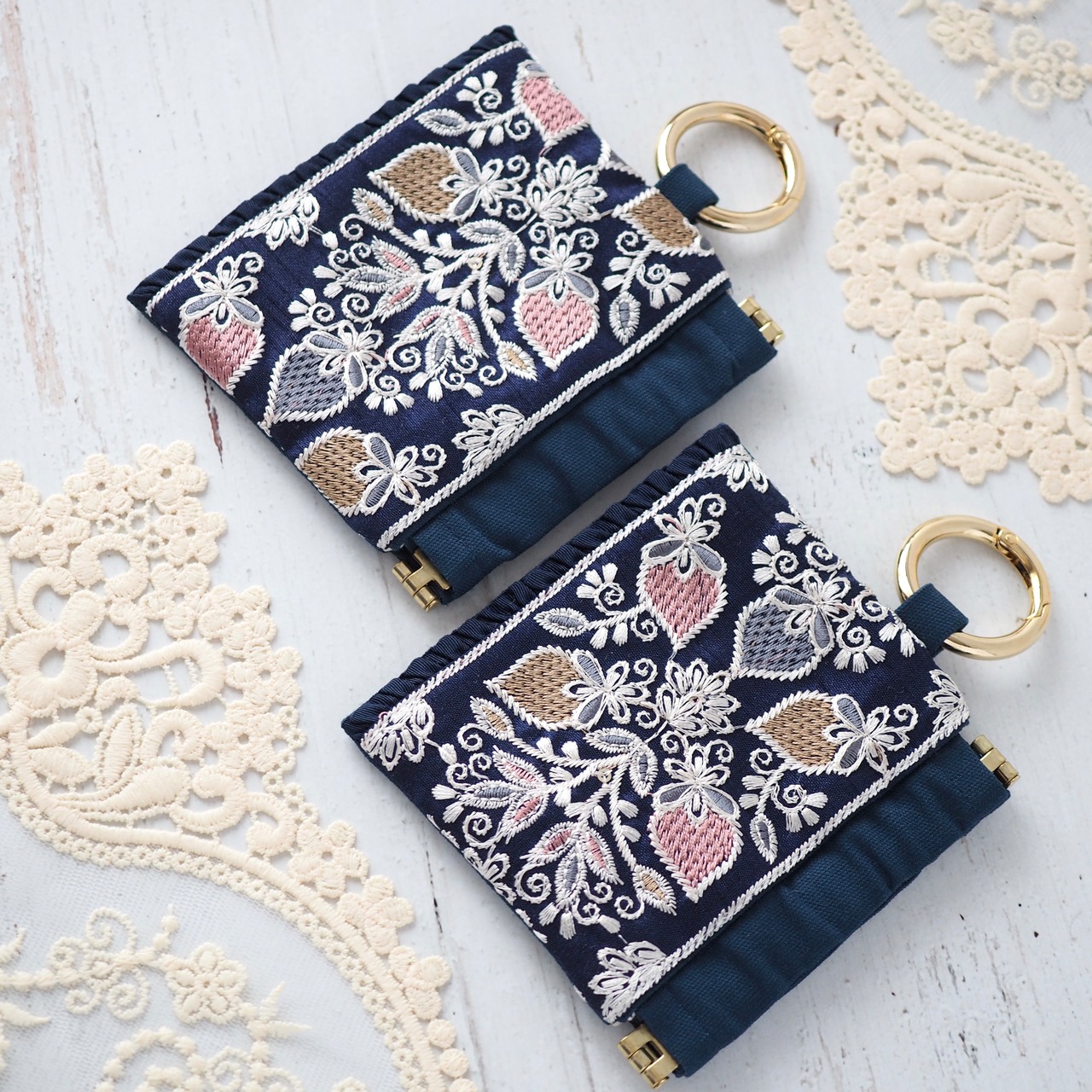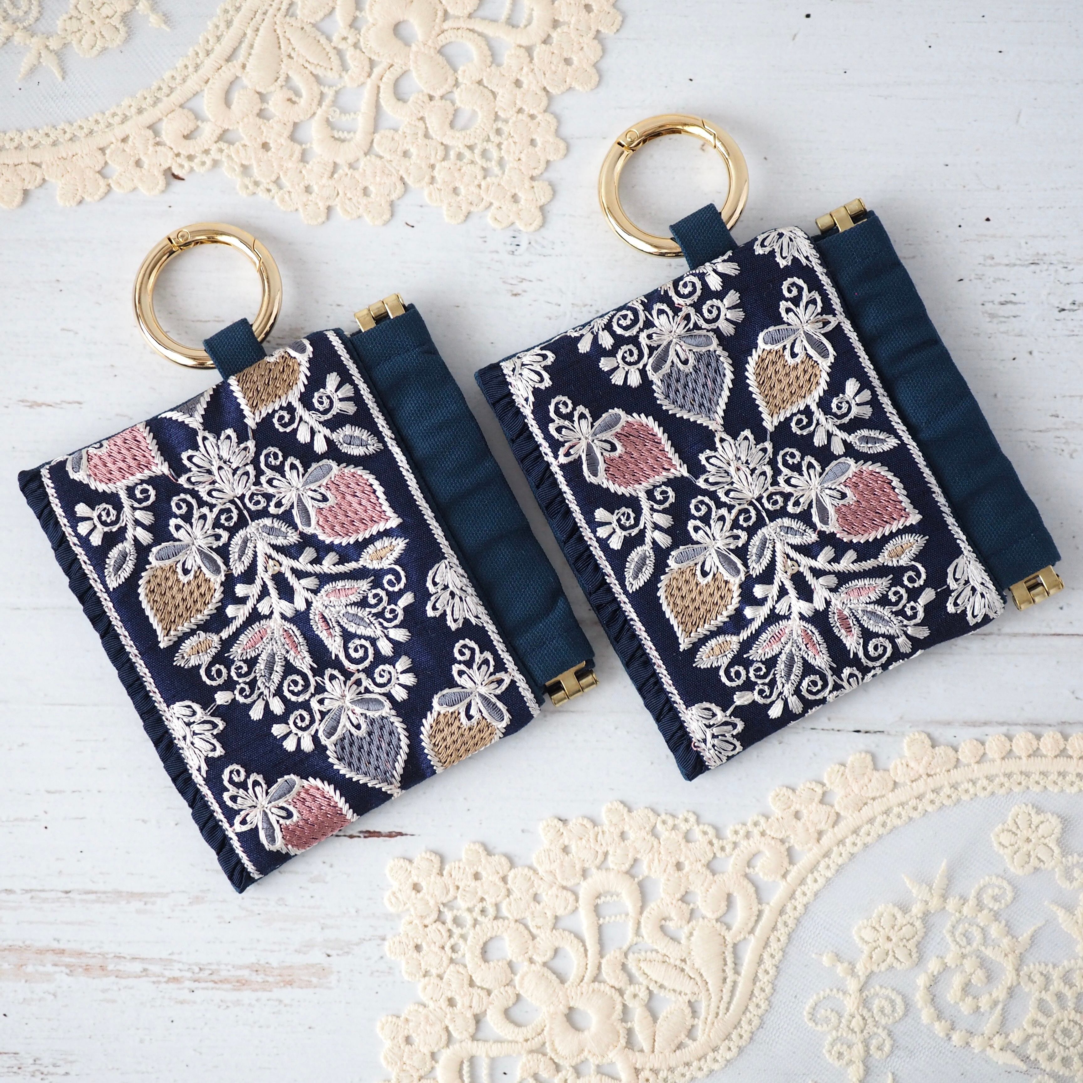 華やかなインド刺繍リボンを主役にした、大人可愛いミニポーチ。