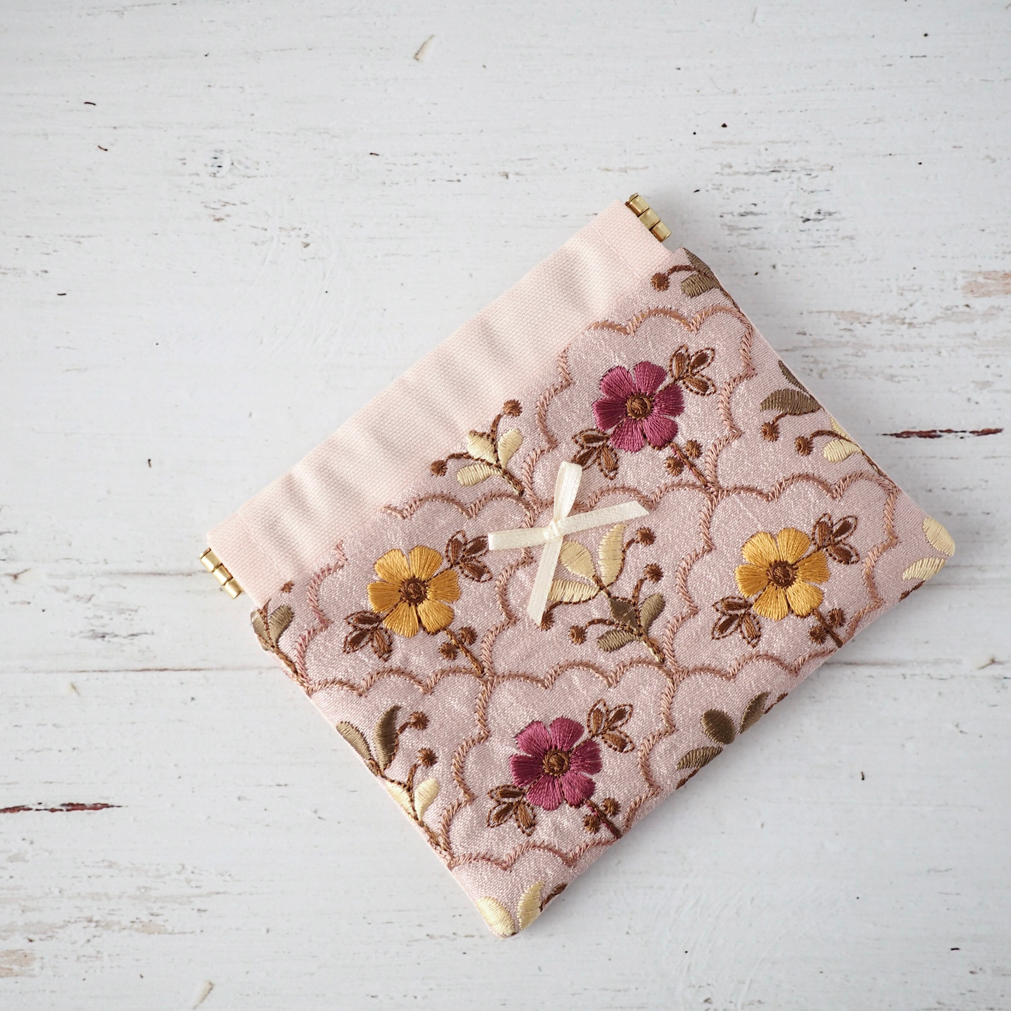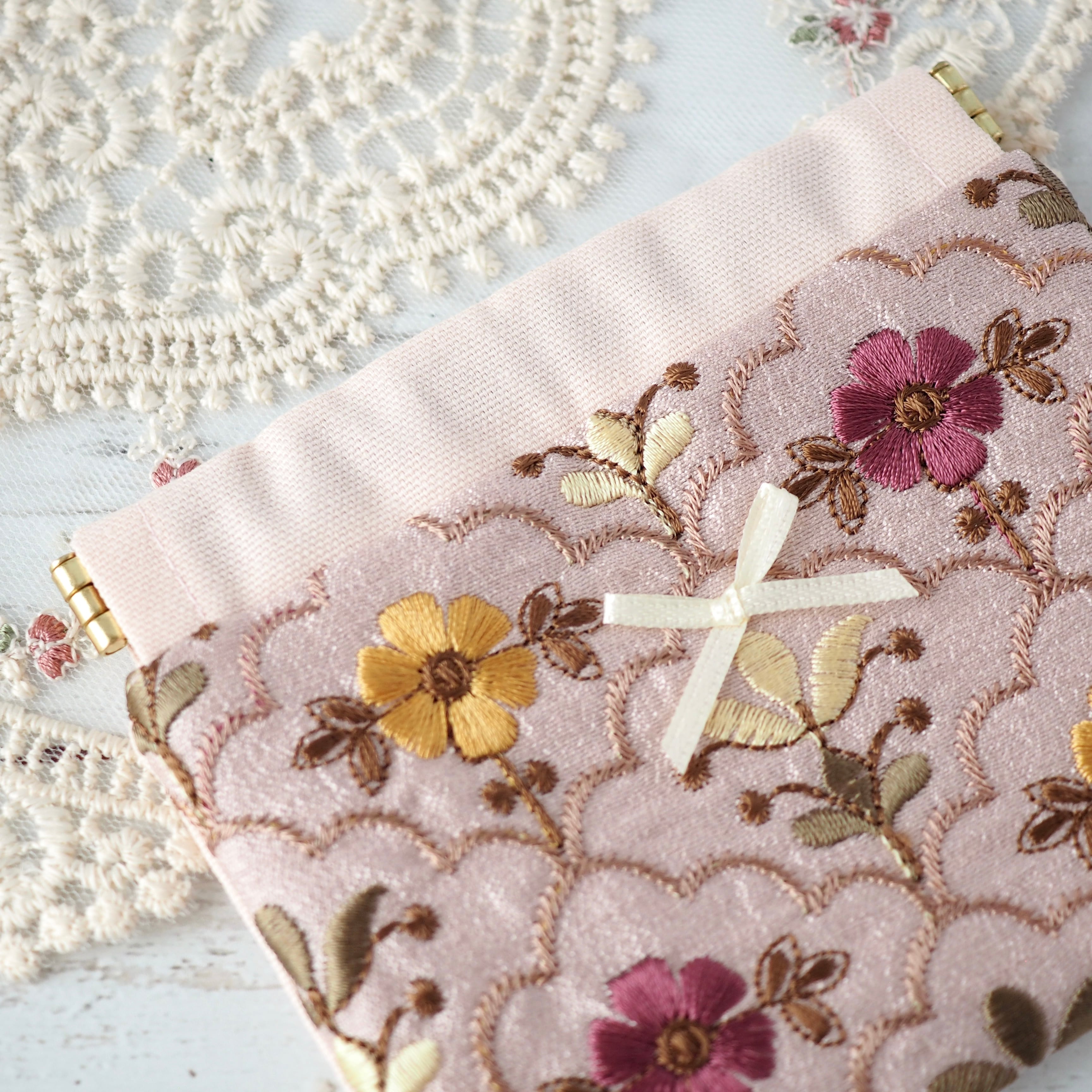 落ち着いたニュアンスカラーの刺繍生地が上品にきらめき、
