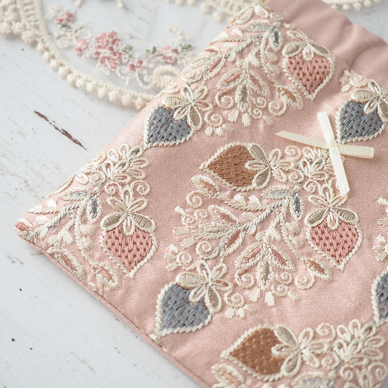 インド生地の華やかさとやさしいニュアンスカラーを組み合わせた、Link.hand-madeのこだわりポーチ。