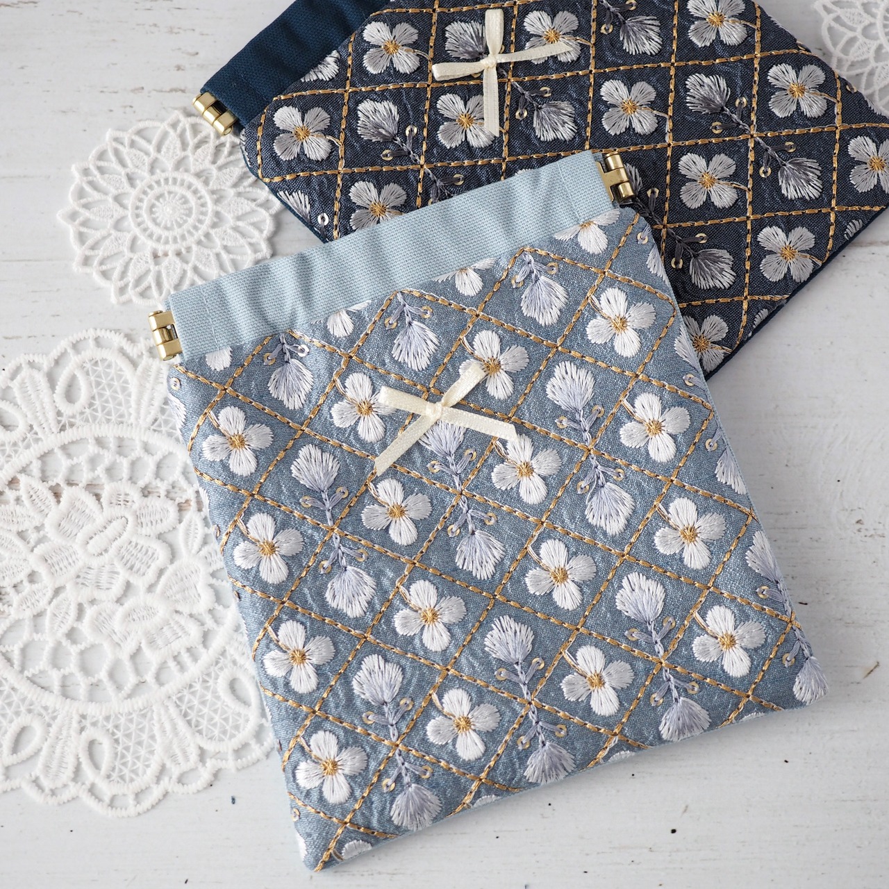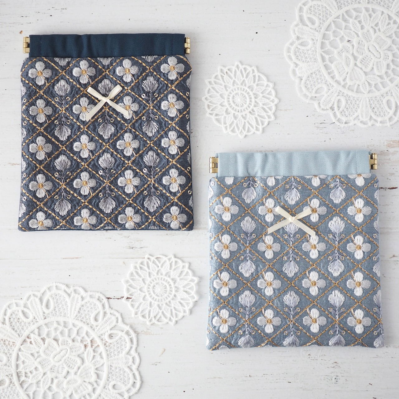 インド刺繍生地の華やかさとやさしいニュアンスカラーを組み合わせた、Link.hand-madeのこだわりポーチ。