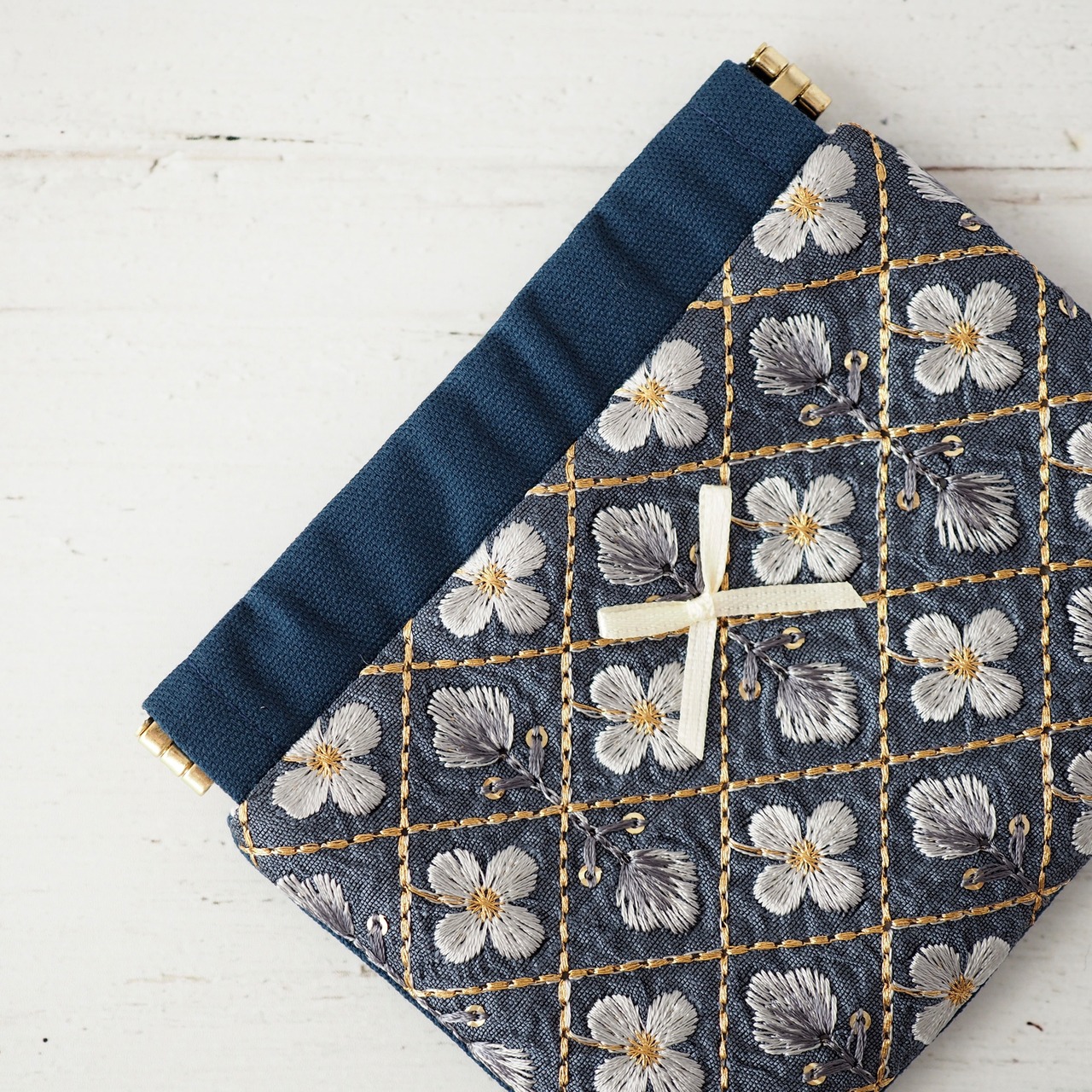 落ち着いたニュアンスカラーの刺繍生地が上品にきらめき、